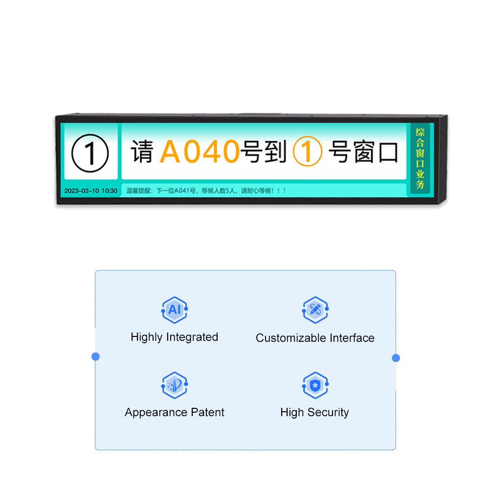永泰新欣科技28寸全彩液晶條形信息屏,是一款專為狹長空間設(shè)計(jì)的智能信息展示設(shè)備。它搭載28寸全彩液晶條形面板,色彩還原真實(shí)細(xì)膩,支持橫向多格式內(nèi)容播放(文字滾動(dòng)、圖片、短視頻等),集成遠(yuǎn)程控制、定時(shí)發(fā)布、實(shí)時(shí)數(shù)據(jù)同步功能,可靈活展示排隊(duì)叫號(hào)、樓層指引、通知播報(bào)等內(nèi)容;機(jī)身輕薄緊湊,支持壁掛或嵌入式安裝,屏幕亮度可調(diào)適配不同光照環(huán)境,兼具低功耗、運(yùn)行穩(wěn)定優(yōu)勢,適配服務(wù)窗口上方、電梯口、走廊等狹長空間,為用戶提供醒目直觀的信息獲取渠道,助力場所優(yōu)化空間信息展示布局與傳達(dá)效率。