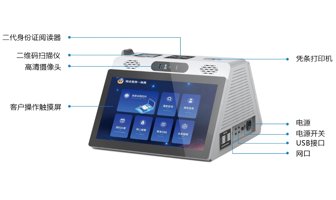 專為政務(wù)服務(wù)場景設(shè)計(jì)的雙屏互動(dòng)一體機(jī),集成高效交互與信息展示功能,助力政務(wù)窗口服務(wù)智能化升級。